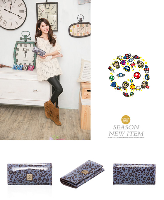 A狂炫迷彩蓋扣長夾-豹紋灰黑