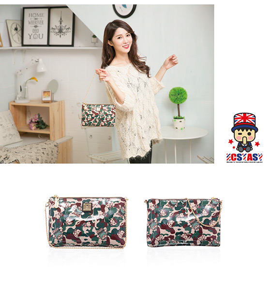 C狂炫豹紋長鍊小肩包-迷彩軍綠