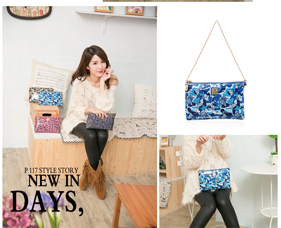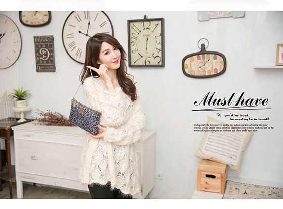 C狂炫豹紋長鍊小肩包-迷彩藍印