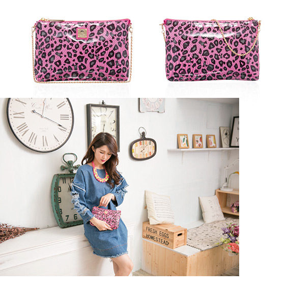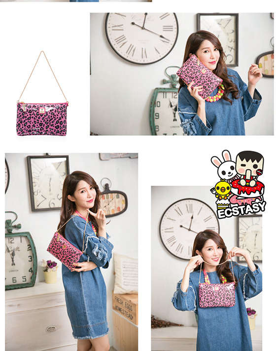 C狂炫豹紋長鍊小肩包-豹紋粉紅